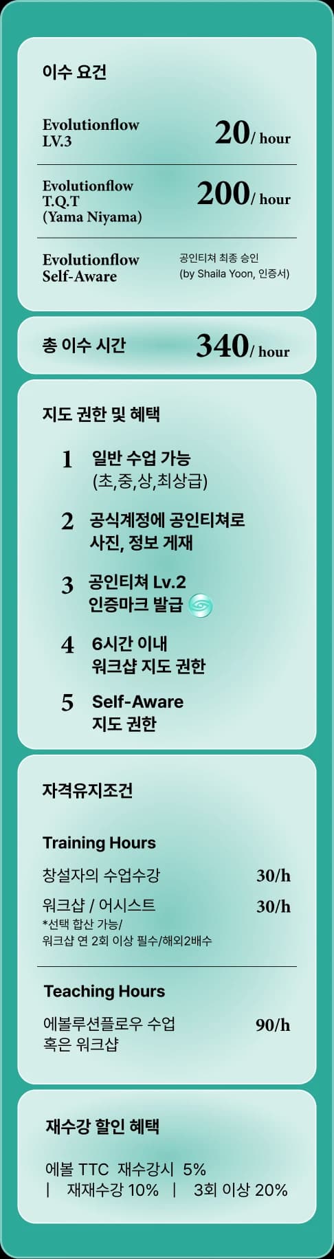 공인티처가 되기위해서는 총 300시간의 교육과정